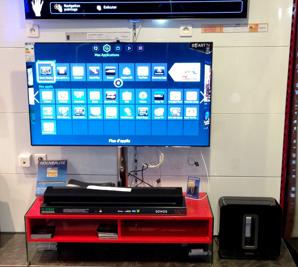 Samsung série F8000 : la Smart TV à découvrir d’urgence ! Actuellement chez Cobra TV, Écrans Full HD / 4K / 8K by Guillaume - 2 avril 201320 février 20140 La nouvelle gamme d’écrans plats Samsung F8000 sont arrivées Vendredi en magasin, comme vous avez pu le lire sur Facebook ou Twitter ! Vous pouvez dès maintenant venir admirer leurs fonctionnalités next-gen, et leur magnifique design… Depuis Vendredi, les amateurs de nouvelles technologies peuvent déjà tester et comparer la nouvelle série d’écrans plats Samsung F8000… Et c’est chez Cobra que ça se passe ! Vous avez été nombreux à venir ce week-end pour voir le bout de leurs dalles… Mais comme tout le monde ne consulte pas notre page Facebook ou Twitter -vous avez tort 😉 -, il nous a semblé important d’officialiser cette nouvelle dans un petit article ! C’est chose faite ! Pour rappel, la série Samsung F8000 incarne, avec la future série 9, le haut de gamme du constructeur Coréen. Si le design est encore plus flatteur que sur l’ancienne série, on apprécie surtout l’amélioration de la dalle Edge LED, toujours en Micro Dimming Ultimate, ainsi que le nouveau traitement 1000Hz et le processeur Quad Core. Enfin, Samsung passe la vitesse supérieure en matière de pilotage, avec les Smart Interactions 2.0, et la fonction S-Recommandation (propositions de programmes en fonction de vos goûts). Et ce n’est pas VRAIMENT pas tout… La série F8000 est composée de 4 références, qui vont du UE-40F8000 au UE-65F8000, en passant par les UE-46F8000 et UE-55F8000. Samsung a même eu le bon goût d’étendre son offre jusqu’au 75 pouces ! Alors en attendant de vous voir dans nos allées, voici la vidéo du CES 2013 où Samsung présentait sa nouvelle série F8000… Et aussi quelques photos. Zoom sur la série Samsung F8000 au CES 2013 : Les premières photos des écrans plats UE-40F8000, UE-46F8000, UE-55F8000 et UE-65F8000 chez Cobrason :